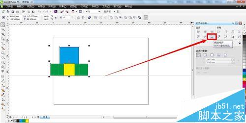4、接著,在cdr軟件的右邊會出現一個對齊與分布的操作面板,我們可以在“對齊”設置里面看到有六種對齊的選擇