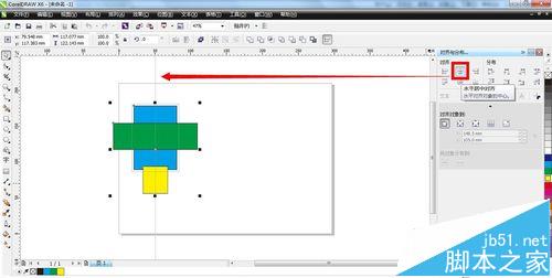 6、設置為“水平居中對齊”,就可以三個圖形以中心線對齊