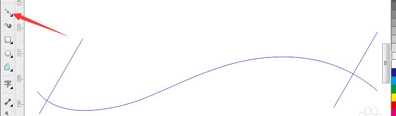 2、在曲線上繪制一條直線并復(fù)制一條。分別將他們放在曲線的兩邊。