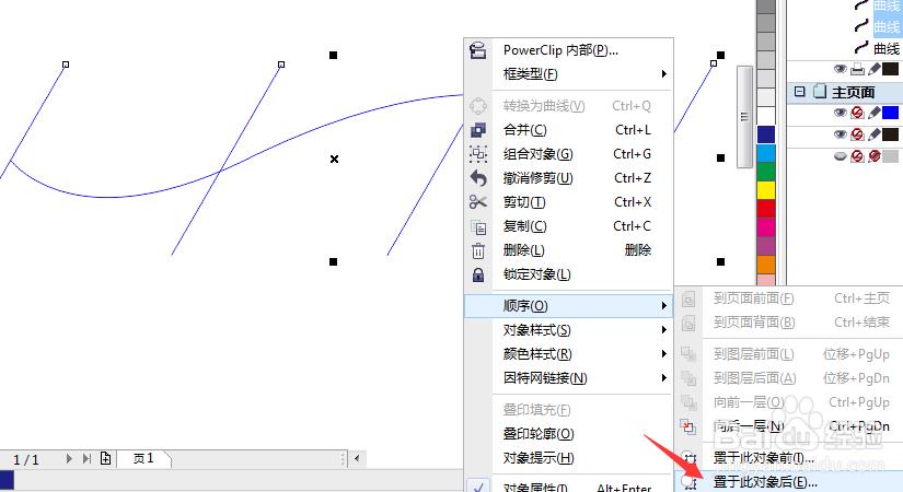6、選擇這些線段,點(diǎn)右鍵-->排列-->置于此對(duì)象后面。之后點(diǎn)擊曲線。