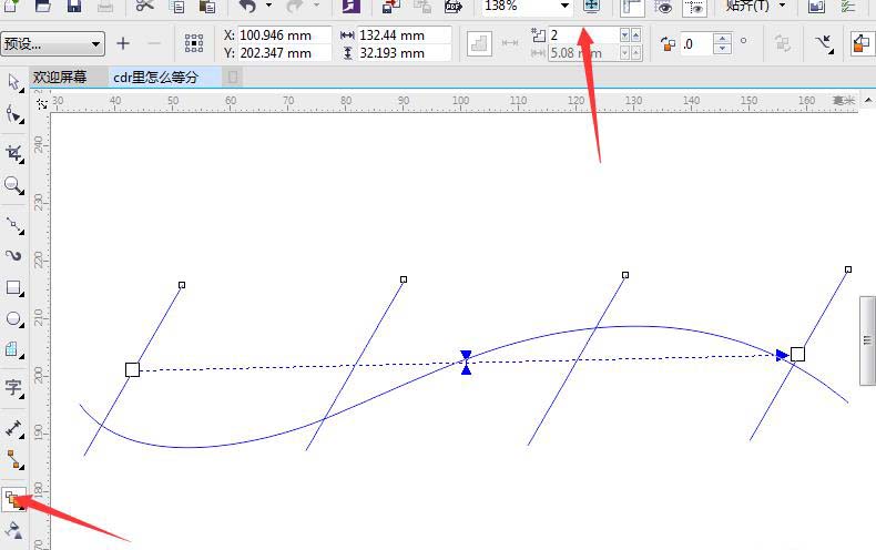 cdr怎么使用調(diào)和工具將一條線段奇數(shù)等分?