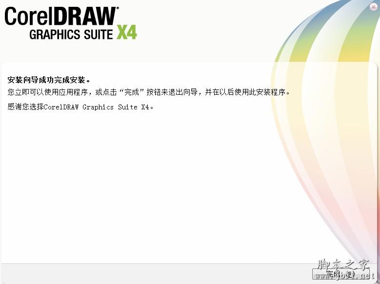 4、CoreDRAW X4安裝完成之后可以看到安裝向導成功完成安裝字樣,說明我們已經完成了對CoreDRAW X4的安裝,此時我們就可以使用CoreDRAW X4進行日常的工作和學習。