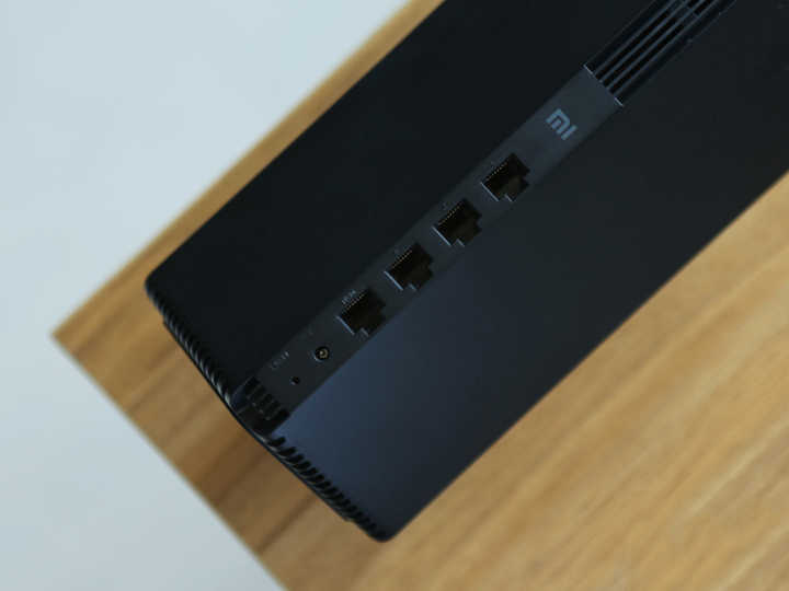 接口部分,小米AX1800配置有四枚接口,在背部的棱線上豎向排列,可以很好地進行隱藏收納,保證產品正面觀感上的簡潔。