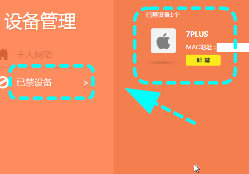 6、禁用成功,此蘋果設(shè)備將出現(xiàn)在【已禁設(shè)備】列表,無法上網(wǎng),完成;