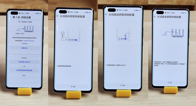 因為配備的4個網口都支持WAN/LAN自適應,所以榮耀路由3的連接比普通路由要更簡單一些,不用多在意網口顏色,直接將入戶網線插入隨意接口即可,打開榮耀手機「智慧生活」APP就會有詳細的操作引導,多臺榮耀路由器之間還可以實現Mesh組網,覆蓋面積更大且會自動統一成一個Wi-Fi名稱,根據用戶實際網絡情況自動漫游切換。
