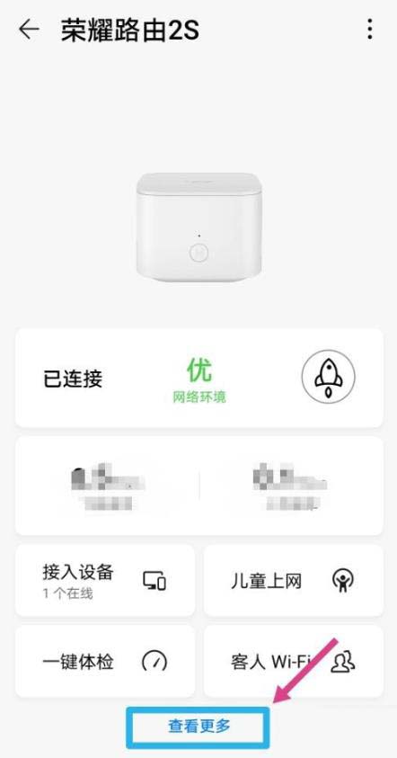 1、在“智慧生活”APP中打開榮耀路由器2S,選擇“查看更多”