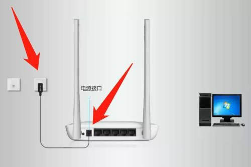 2、然后用網(wǎng)線連接路由器的WAN口與寬帶入口,如下圖所示。