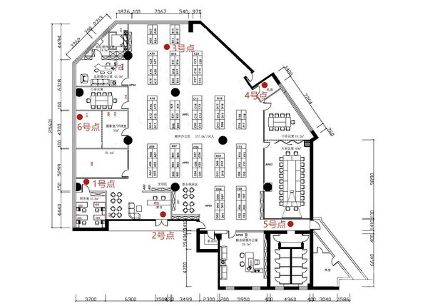 信號測試房間戶型圖,紅點為測試點位