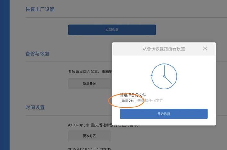 6、要恢復(fù)路由器,則點(diǎn)擊立即恢復(fù),點(diǎn)擊選擇文件。