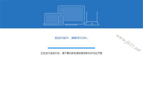 查看升級提示,在升級工程中不能中斷路由器電源,此時路由器呈藍色指示燈狀態。