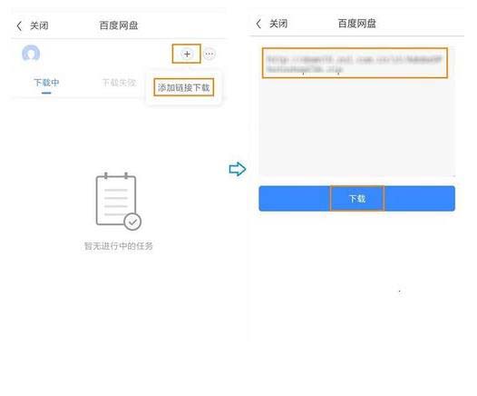 4、點擊+> 添加鏈接下載。在下載頁面中輸入下載鏈接地址,點擊下載,即可下載網絡資源。