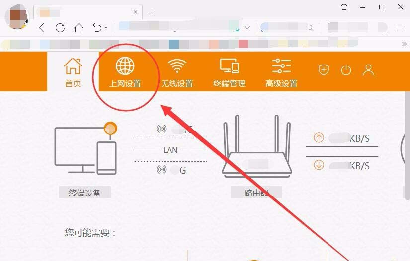 2、路由器界面中,選擇上網(wǎng)設(shè)置選項(xiàng)。