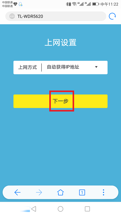 2、接著,在手機瀏覽器中,輸入上一步中查看到的管理頁面地址,打開路由器的設置頁面 ——> 然后根據頁面中的提示進行操作,如下圖所示。