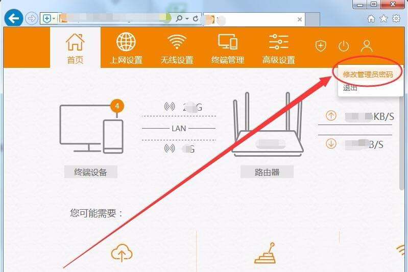 3、有的路由器第一次登錄時,會要求你設置一個登錄密碼,在此處設置路由器密碼即可。進入路由器設置頁面后,選擇右上方的管理員設置選項。