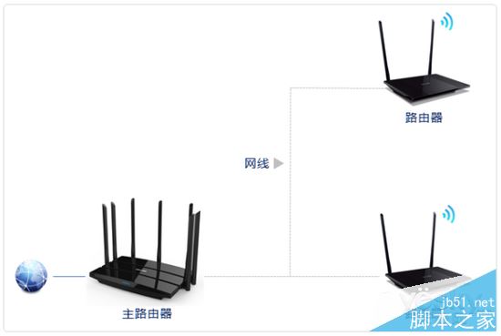 使用網線將多個路由器連接起來,其中連接寬帶的路由器作為主路由器,其他的作為副路由器。主副路由器之間通過各自的LAN口連接起來,此時副路由器相當于無線交換機。