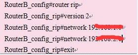 9、在路由器B上配置RIP動態路由協議,命令如下: