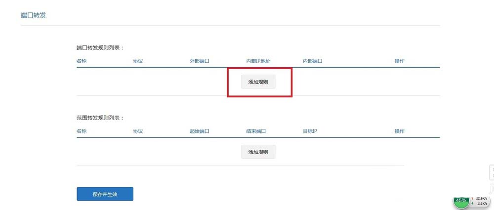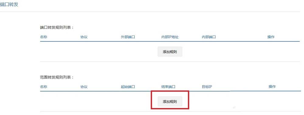 3、在端口轉發下,如果要添加單個端口的話,選擇第一個“添加規則”
