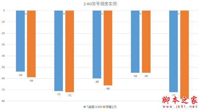 在2.4G頻段的測試中,飛魚星VW1200依舊有著明顯的優勢。值得一提的是本人家中的 E點位置在使用榮耀立方的時候雖然能測到無線信號(該點是我們家的死角),但無法上網。自從使用了飛魚星VW1200后,這個位置的網絡終于通暢了!