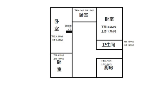 經過我們的測試,在使用全新的斐訊K3C路由器之后,基本上房間沒有什么信號死角,即使是最偏遠的廚房也能獲得不錯的信號以及數據處理量,我們做了一張平面圖,大家可以看看具體的數據傳輸速度。