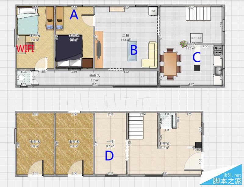 測試orbi主體路由器的信號強度,跟網件R7000作對比。網件是刷了梅林7.4固件,無線區域選擇美國地區。而無線網卡就用intel 8265ac,因為它是2x2mimo的,對orbi的2x2mimo公平些。orbi是高通芯片,R7000是博通芯片,無線網卡是intel芯片,對高通和博通都公平。平面如下: