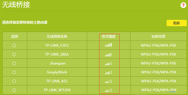 所以,在設置tplink橋接主路由器信號的時候,注意觀察信號強度。如果主路由器的信號強度顯示只有1格或者2格,建議調整兩個路由器之間的距離,確保主路由器的信號強度比較好。