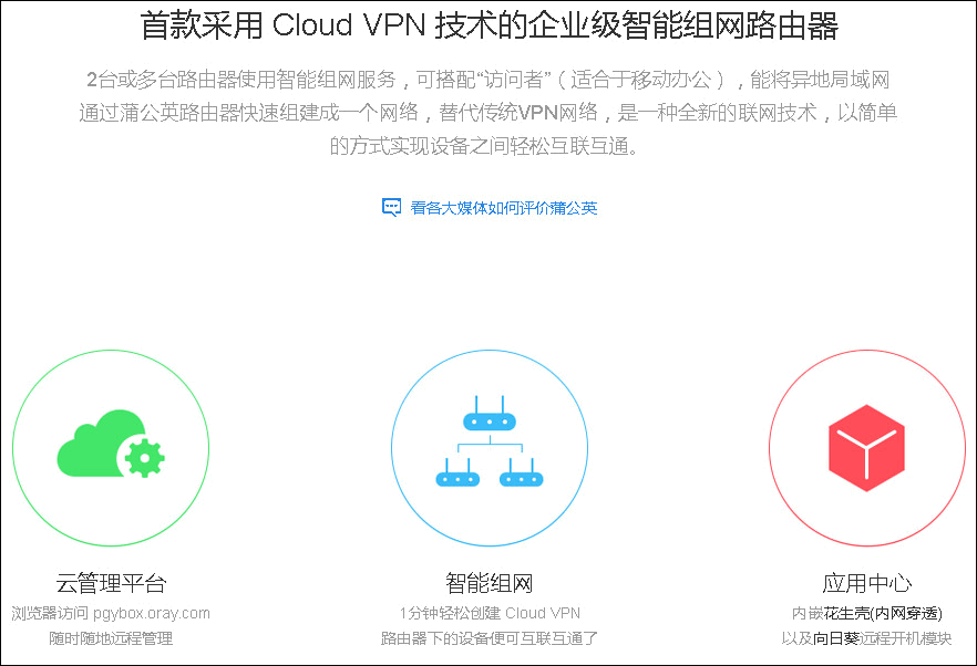 蒲公英X5是上海貝銳信息科技推出的一款企業(yè)級(jí)路由器,主打Clould VPN技術(shù),簡(jiǎn)單的理解就是通過(guò)云端來(lái)實(shí)現(xiàn)的專用虛擬網(wǎng)絡(luò),讓擁有這臺(tái)路由器的朋友,哪怕是天各一方,也能通過(guò)智能的組網(wǎng)實(shí)現(xiàn)局域網(wǎng)那樣的資源共享,組建局域網(wǎng)游戲等等,是不是很神奇?廢話不多說(shuō),先來(lái)看看蒲公英X5的廬山真面目。
