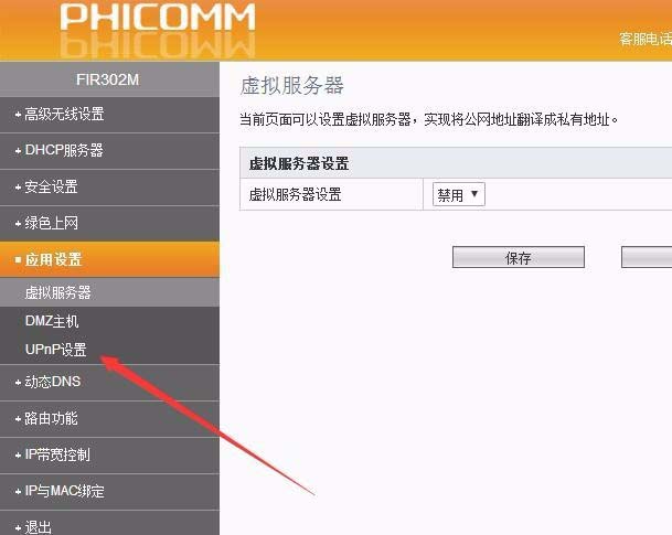 5、在打開的應用設置折疊菜單中,點擊“Upnp設置”菜單項