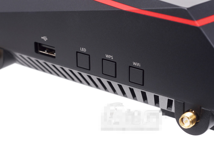 RT-AC5300配置有獨立的LED燈開關、WiFi開關以及WPS功能按鈕,隔壁則有一個USB 2.0接口