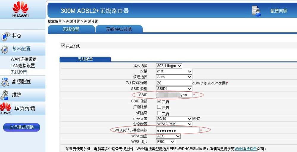 3、把HG的 LAN1連接到光貓上,別的三個LAN接口隨便用一個連接到電腦上。路由器的指示燈: internet、WLAN、LAN1及任意其他LAN等4燈亮且閃爍。在電腦上HG界面,還是192.168.1.1,進基本設置,去WAN設置,連接類型設為DHCP。不選PPPoe,不需設置寬帶賬號和密碼。