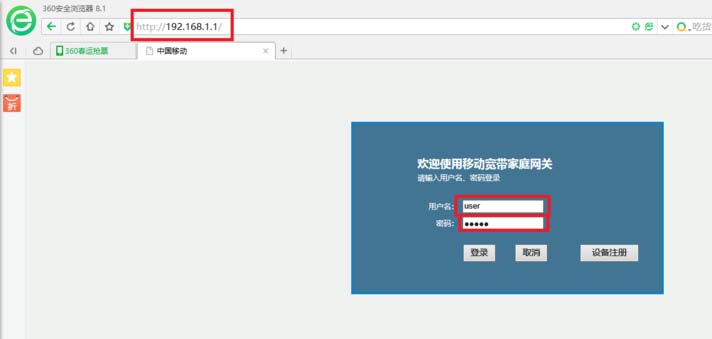 1、找到光貓背面的用戶賬號并輸入到管理界面(默認192.168.1.1)。