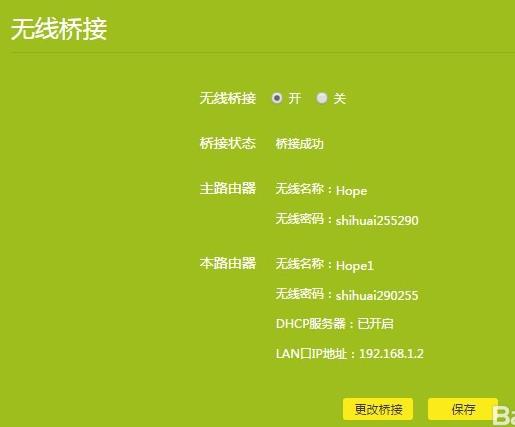 7、最后等待橋接。等待30秒左右,橋接成功。另外,建議將新路由器的LAN地址設(shè)置為192.168.1.2,與主路由器的92.168.1.1進行區(qū)分,便于管理