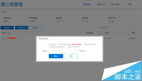 4、點擊完成后,關掉跳出的“旁路設置”,點擊“添加訪問者”,跳出“添加訪問者”對話框。