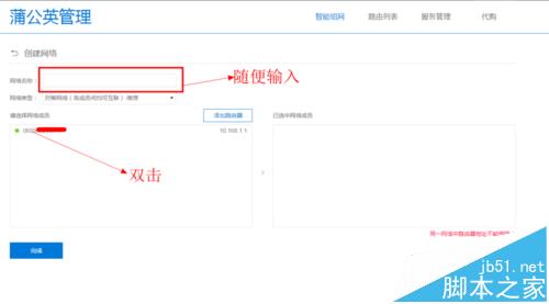3、網絡名稱:隨便填,請選擇網絡成員:雙擊下邊列表中的路由名稱,添加到右側的列表中。