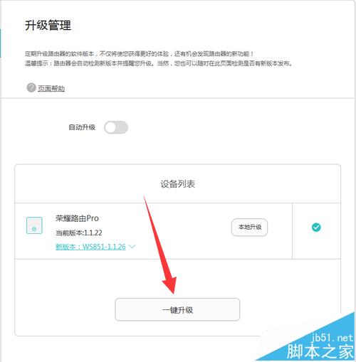 5、路由器升級方法有兩種,一種是在線一鍵升級,另一種是本地固件恢復升級,我來說個簡單的方法吧,直接點擊下面的【一鍵升級】。