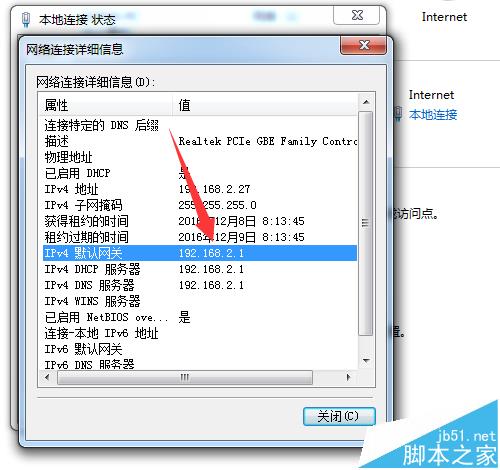 1、因為你有可能更改了路由器的管理IP地址,所以建議在本地連接、詳細信息查看網關地址,記住這個IP地址。