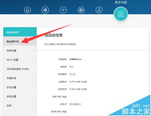 4、然后在左邊人側邊欄找到第二項【路由器升級】。