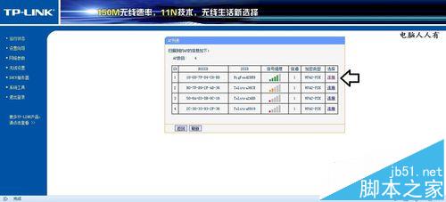 9、稍后,就會彈出周邊的無線信息(點選主路由器的訊號,通常在第一位)→連接。