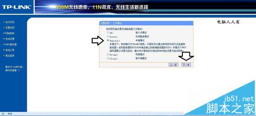 14、最后注意,如果選擇工作模式中的無線橋接(無線列表中顯示主副路由器)不成功的話,可以嘗試使用中續模式(無線列表中只顯示主路由器)。