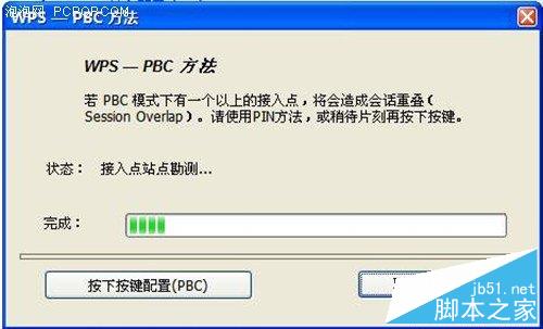 松開路由器WPS按鈕后迅速按下NW336網卡上面的WPS按鈕,直到出現如下界面然后松開。