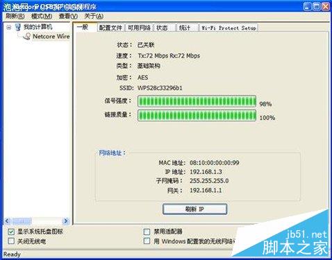 連接成功,在磊科網卡配置工具里面可以看到已經連接上了并且已經加密。該加密模式非常安全,目前還無法破解該加密算法,可以有效防止別人“蹭網”。