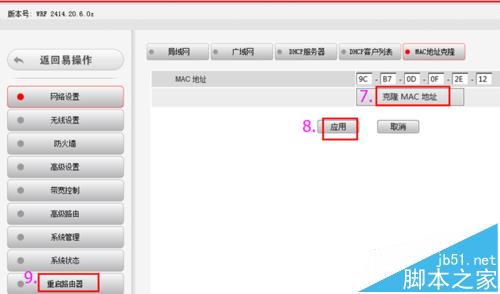 B、 克隆MAC地址(注:此操作,一定要電腦用“網(wǎng)線”連接到路由器的LAN口來操作,無線連接的將無效)