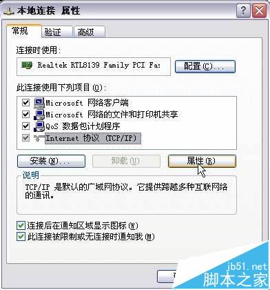 3、如下圖點擊TCP/IP后點擊“屬性”