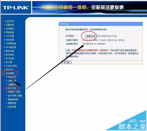 5、再次進(jìn)入路由器管理界面【系統(tǒng)管理】-【軟件升級(jí)】-【選擇文件】然后選擇剛剛的bin文件并確認(rèn)。