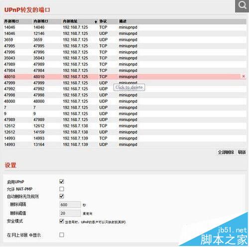 8、UPnP簡而言之就是即插即用,也就是自動端口識別轉發,不用你去手動設置,啟用后,一些支持該功能的攝像頭、打印機、視頻播放器就可以自動識別。甚至迅雷支持這個功能后你不用開啟端口轉發就可以自動識別用于完成BT通訊。所以建議打開UPnP。