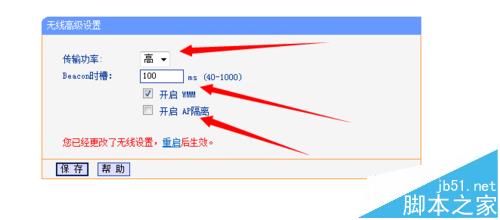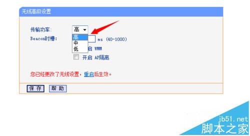 2、這里我們看一下傳輸功率,Beacon時槽,以及開啟wmm和ap隔離。首先這款無線路由器的功率是可調的,一般情況下,我們選擇功率為高,這樣無論是信號強度還是傳輸速率都會提高。