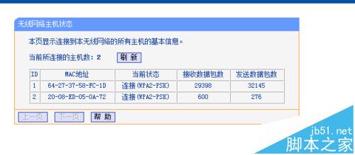 6、最后來看一下主機狀態,這里顯示的就是連接到本路由器的設備的mac地址,連接狀態和數據的傳輸量。