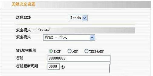 4、接著再點擊左側的“無線設置”下的“無線安全設置”鏈接,在打開的“無線安全設置”界面中設置相關的無線加密參數,建議使用WPA2,設置完成后點擊“保存”按鈕:
