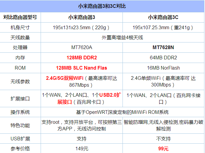 小米路由器3C和3區(qū)別對(duì)比