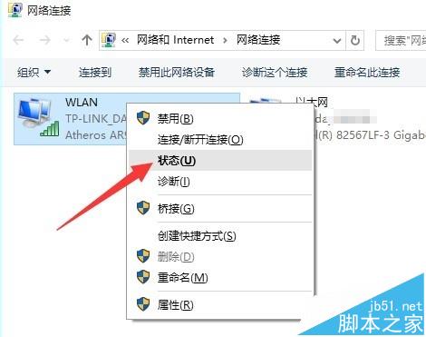 3、待進(jìn)入“網(wǎng)絡(luò)連”界面后,右擊“無線連接 ”,從其右鍵菜單中選擇“狀態(tài)”項(xiàng)進(jìn)入。