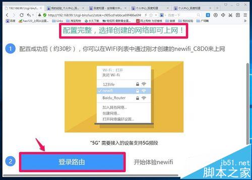 5、完成以后,界面顯示【配置完整,選擇創建的網絡即可上網!】,我們點擊:登錄路由;